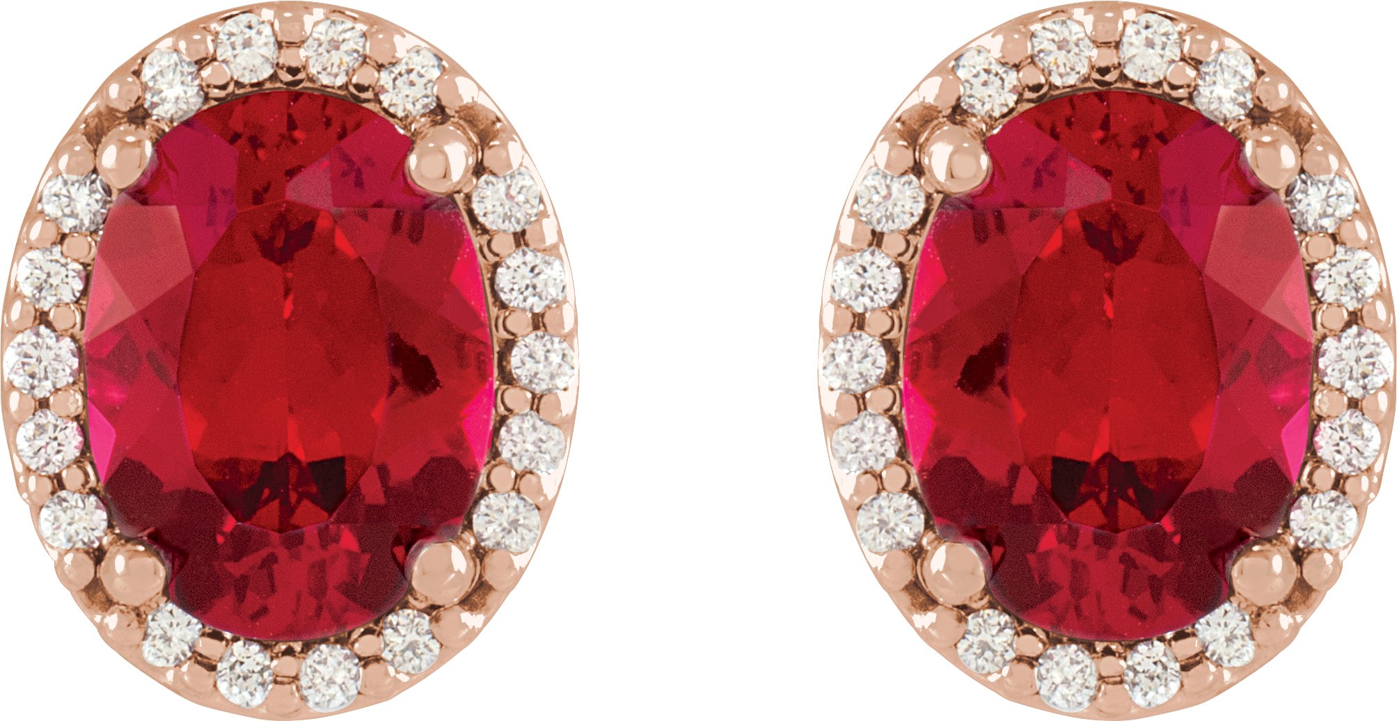 14K Rose 5x3 mm Lab Grown Ruby and .04 CTW Natural Diamond Halo Style Earring Ref 19705876
