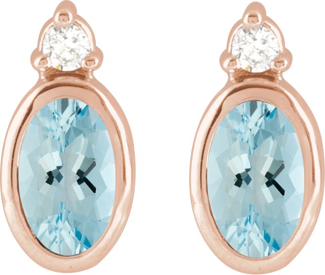 14K Rose 5x3 mm Natural Aquamarine & .03 CTW Natural Diamond Earrings