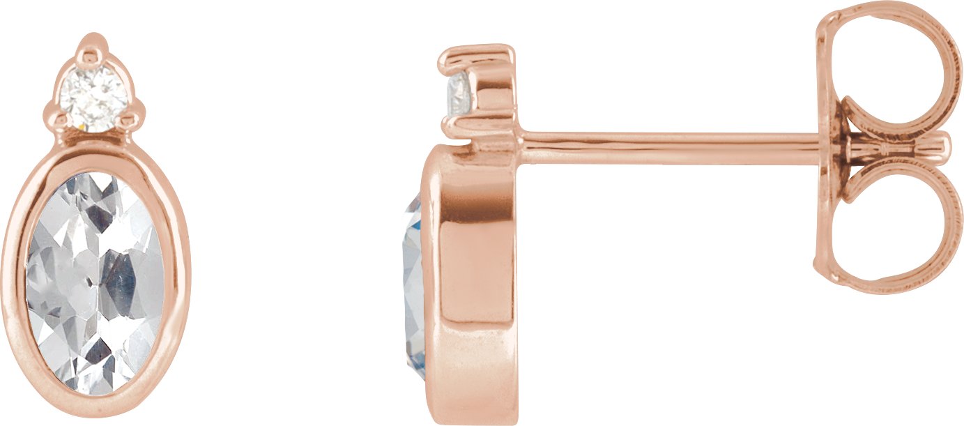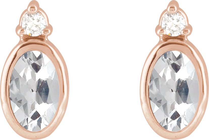 14K Rose 5x3 mm Natural White Sapphire & .03 CTW Natural Diamond Earrings