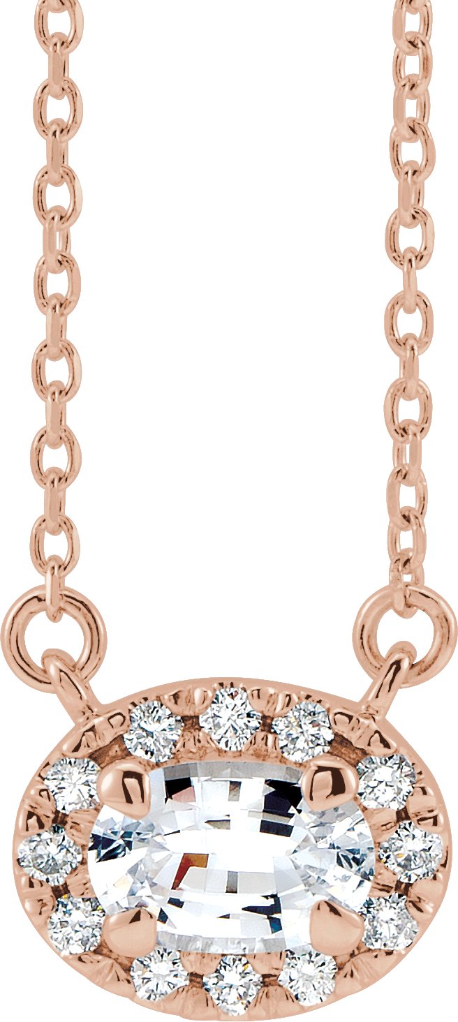 14K Rose 5x3 mm Oval White Sapphire & .05 CTW Diamond 18 inch Necklace