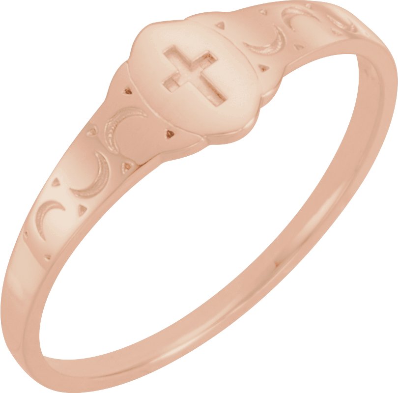14K Rose 5x3 mm Oval Youth Cross Signet Ring