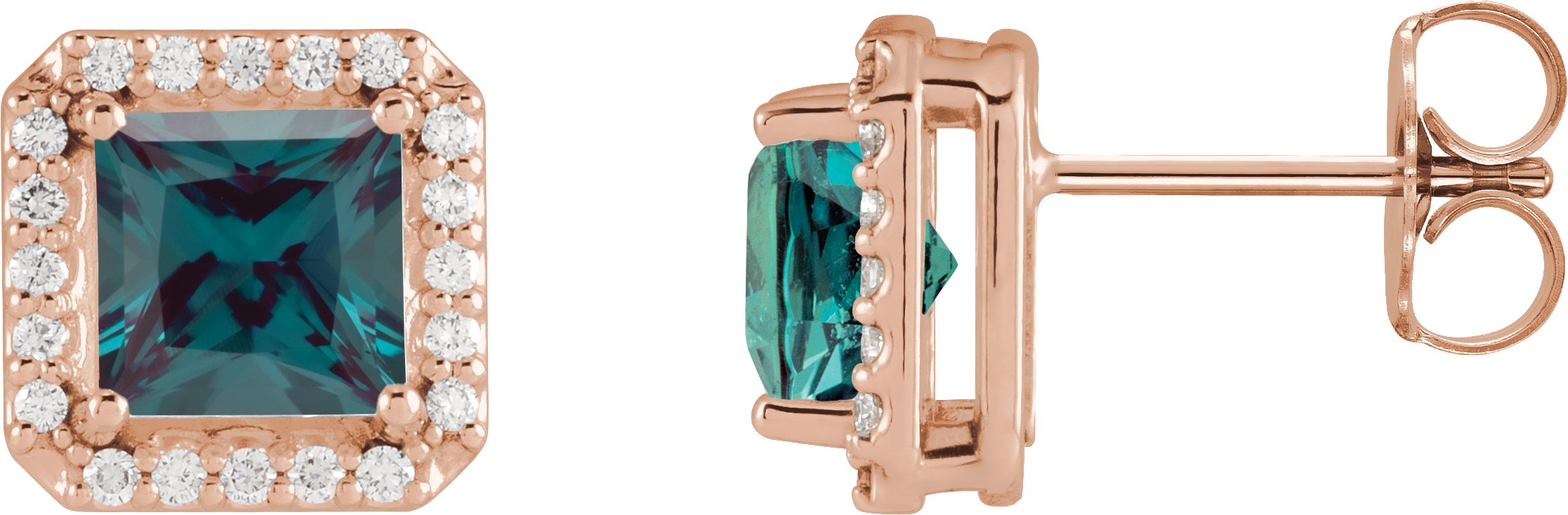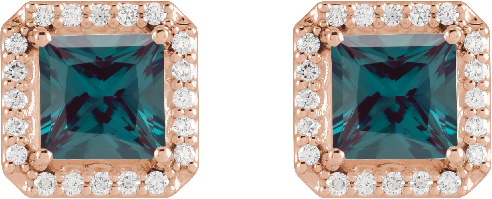 14K Rose 5x5 mm Lab Grown Alexandrite 0.17 CTW Natural Diamond Halo Style Earrings Ref 19609065