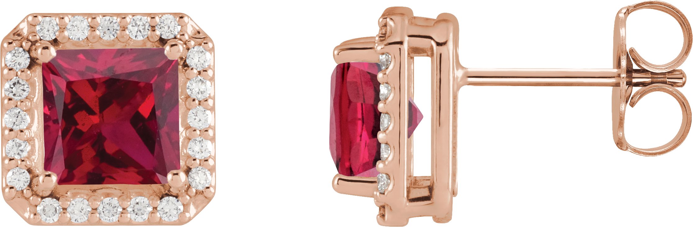14K Rose 5x5 mm Lab Grown Ruby 0.17 CTW Natural Diamond Halo Style Earrings Ref 19609067