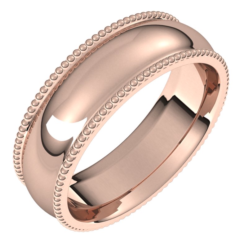 14K Rose 6 mm Beaded Comfort Fit Band Size 16.5