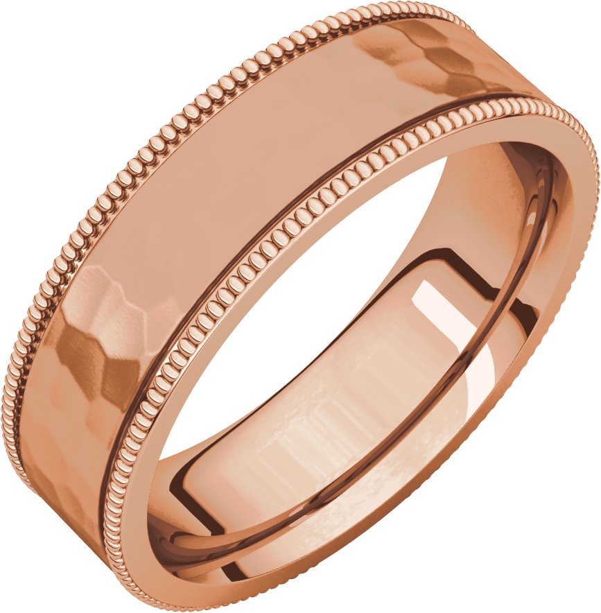 14K Rose 6 mm Flat Milgrain Band with Satin and Hammer Finish Size 10.5 Ref 15125559