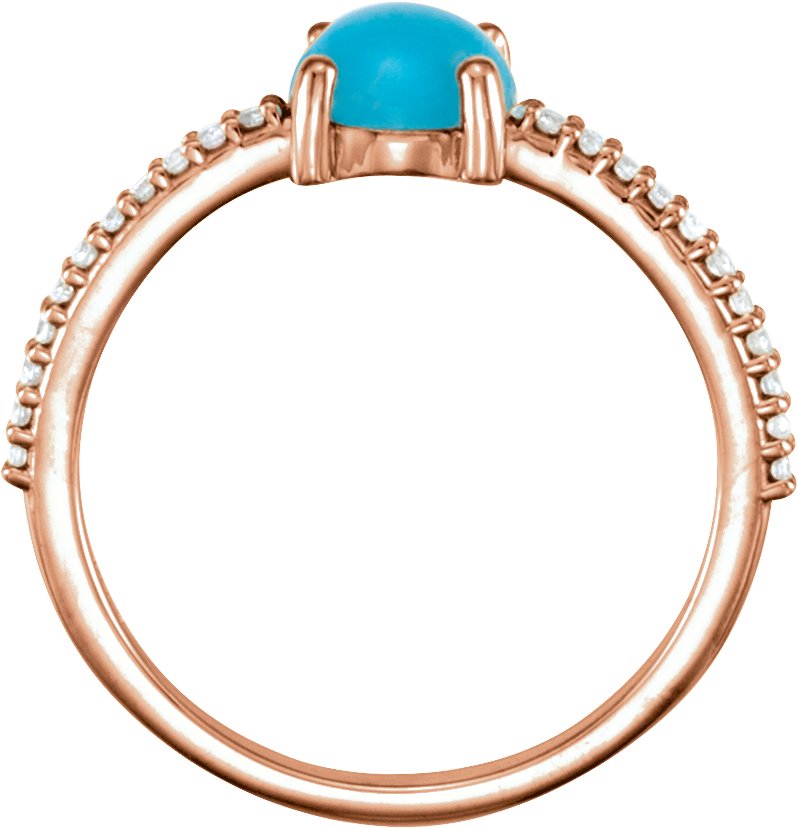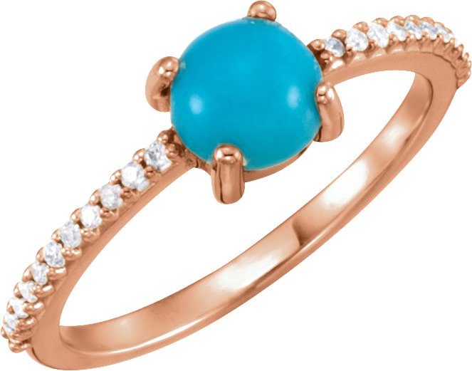 14K Rose 6 mm Round Cabochon Turquoise & 1/8 CTW Diamond Ring