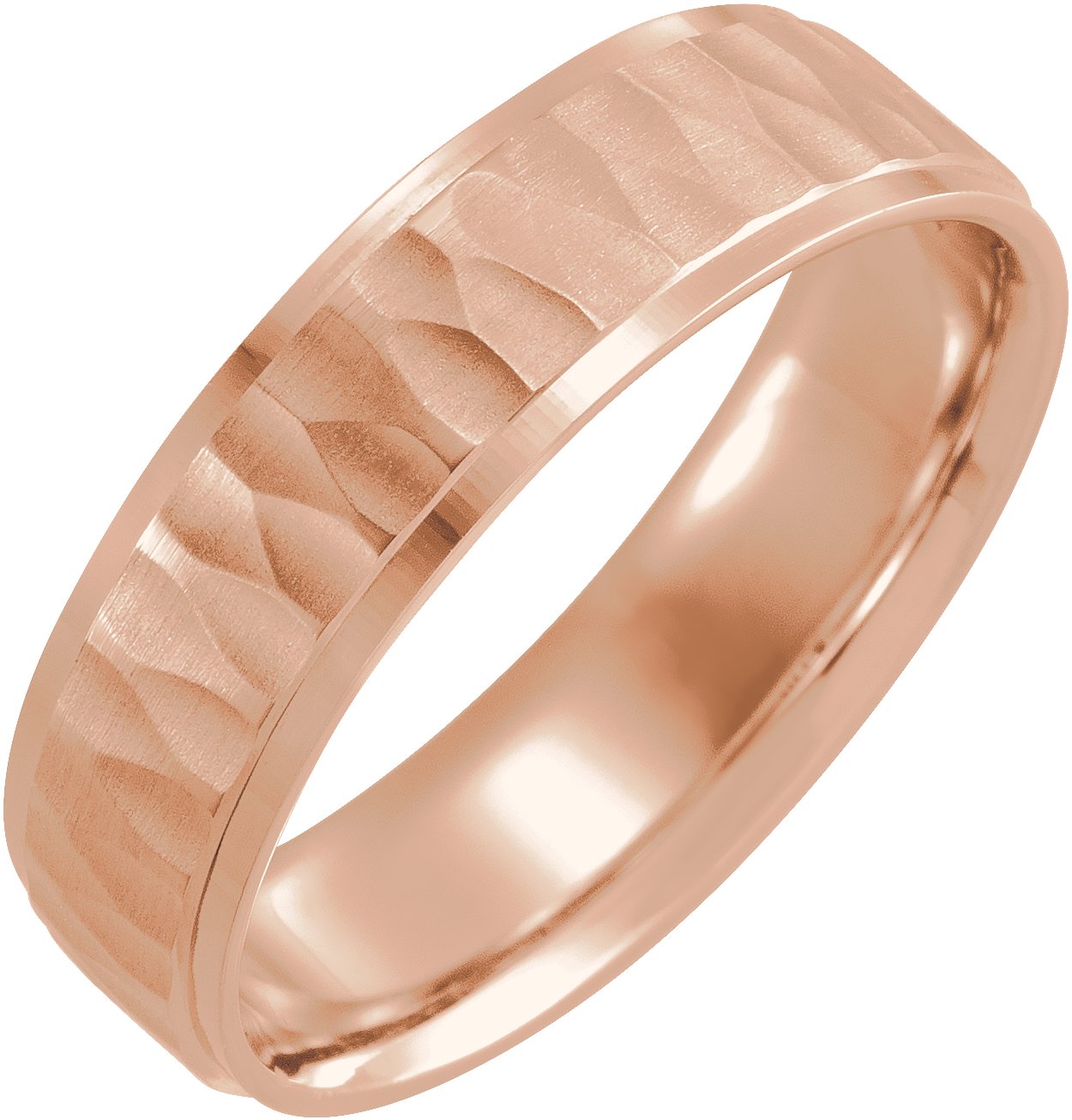 14K Rose 6 mm Step Edge Band with Matte Hammer Finish Size 9 Ref 16076687