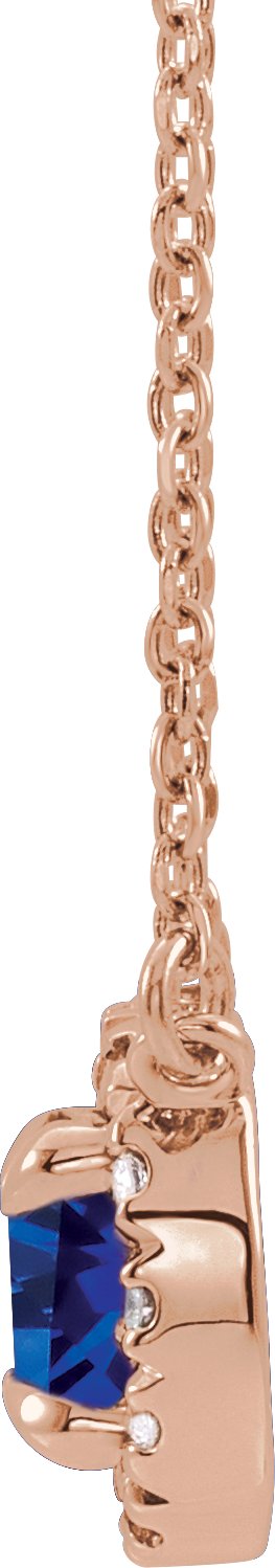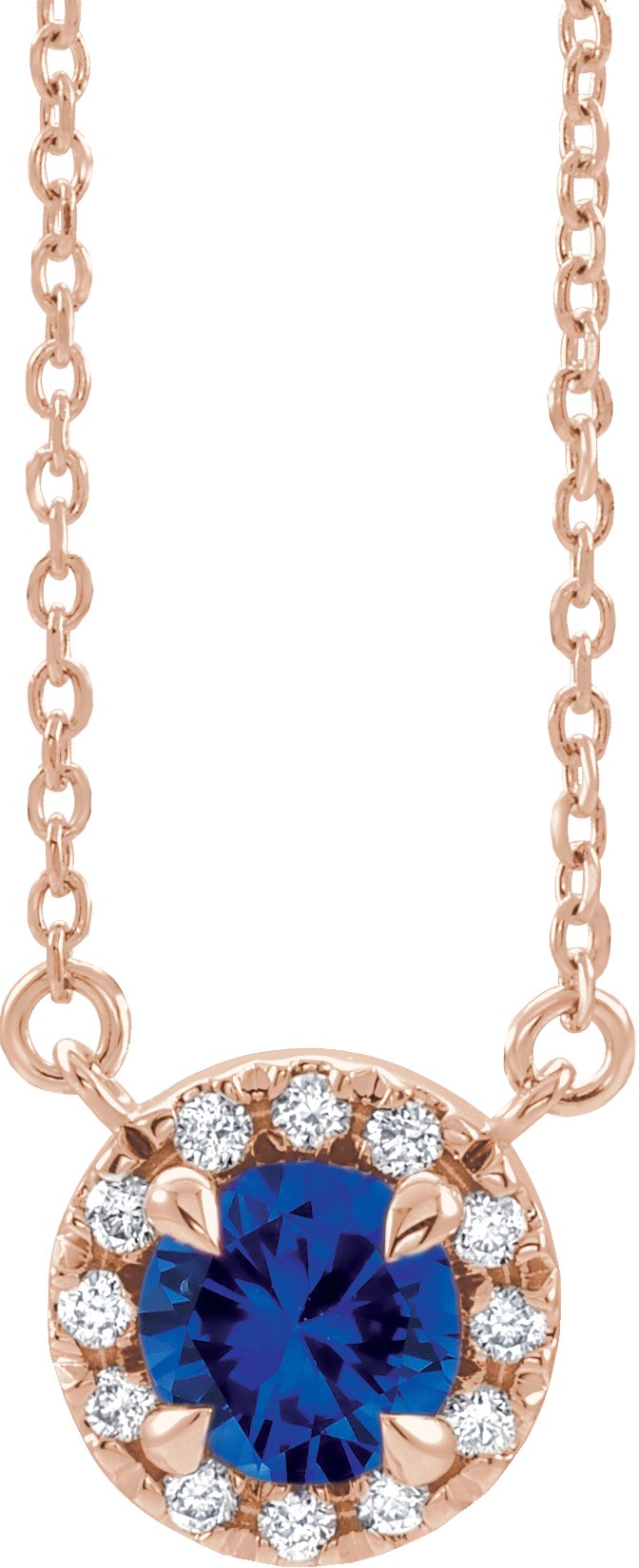 14K Rose 6.5 mm Round Chatham Lab Created Blue Sapphire & 1/6 CTW Diamond 16 inch Necklace