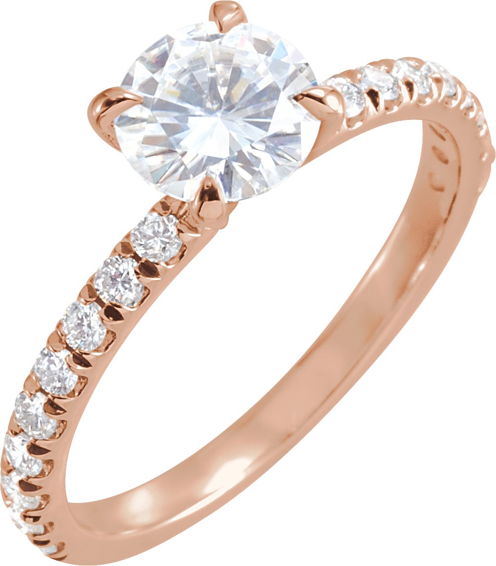 14K Rose 6.5 mm Round Forever One™ Moissanite & 1/3 CTW Diamond Engagement Ring