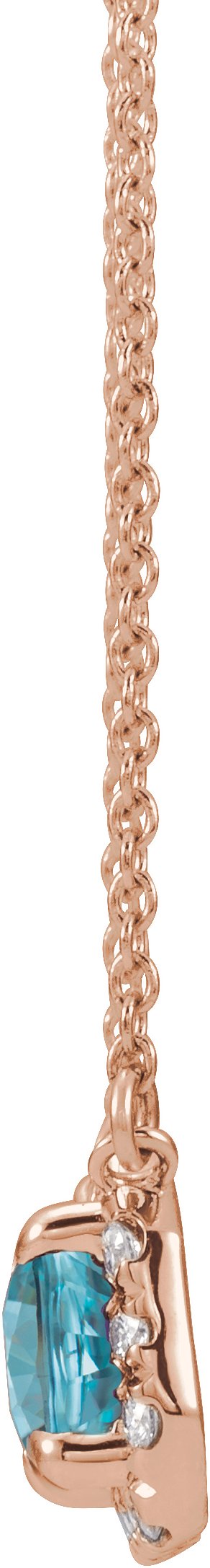 14K Rose 6x4 mm Emerald Blue Zircon & 1/5 CTW Diamond 18 inch Necklace