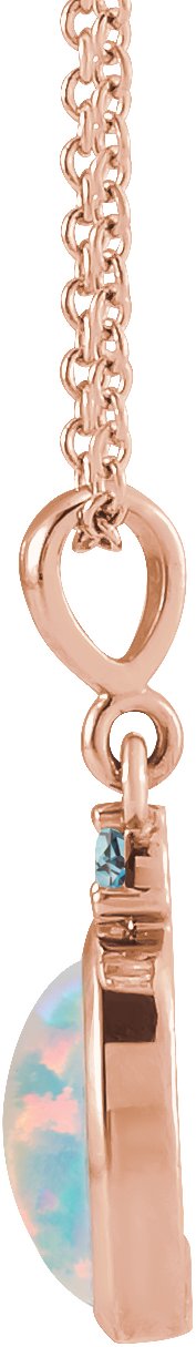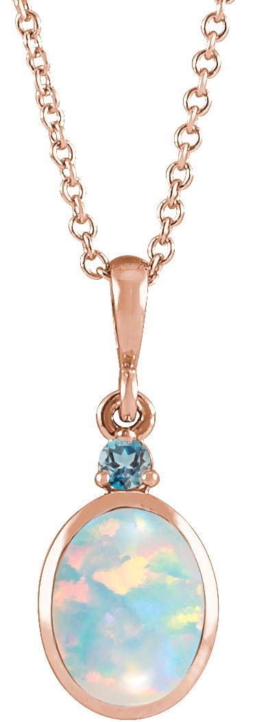 14K Rose 6x4 mm Lab-Grown White Opal & Natural London Blue Topaz 16-18" Necklace