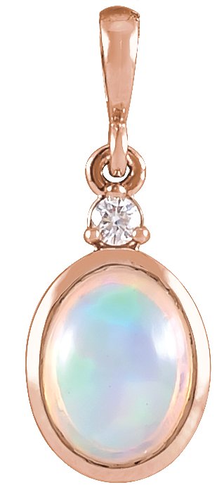 14K Rose 6x4 mm Natural Ethiopian Opal & .015 CT Natural Diamond Pendant