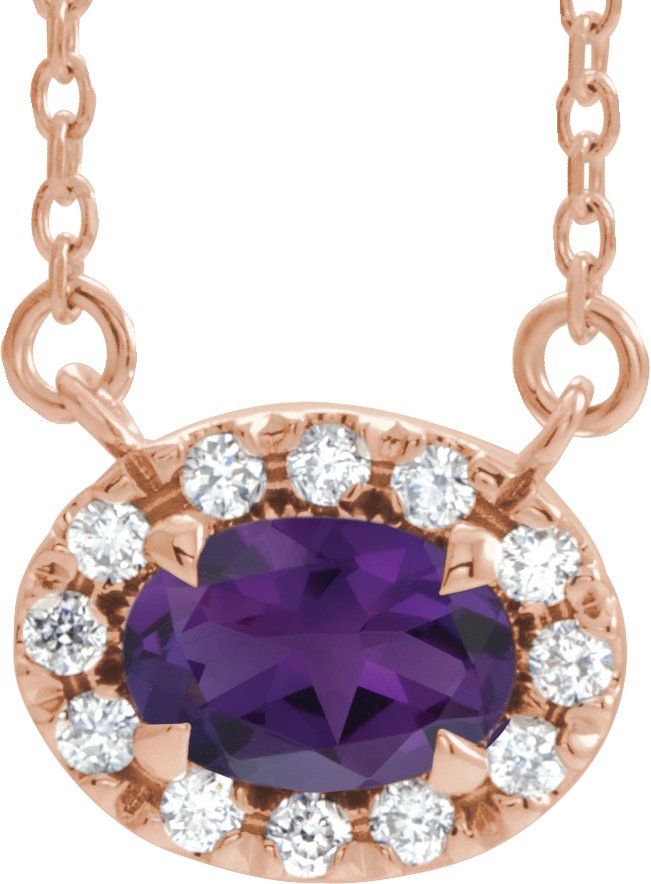 14K Rose 6x4 mm Oval Amethyst & 1/10 CTW Diamond 16 inch Necklace