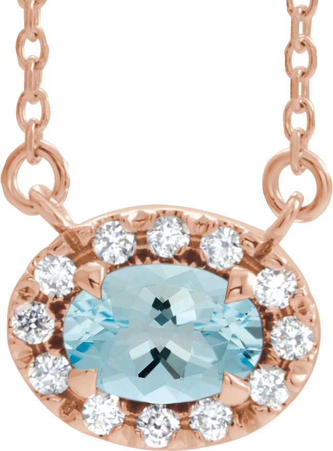 14K Rose 6x4 mm Oval Aquamarine & 1/10 CTW Diamond 18 inch Necklace