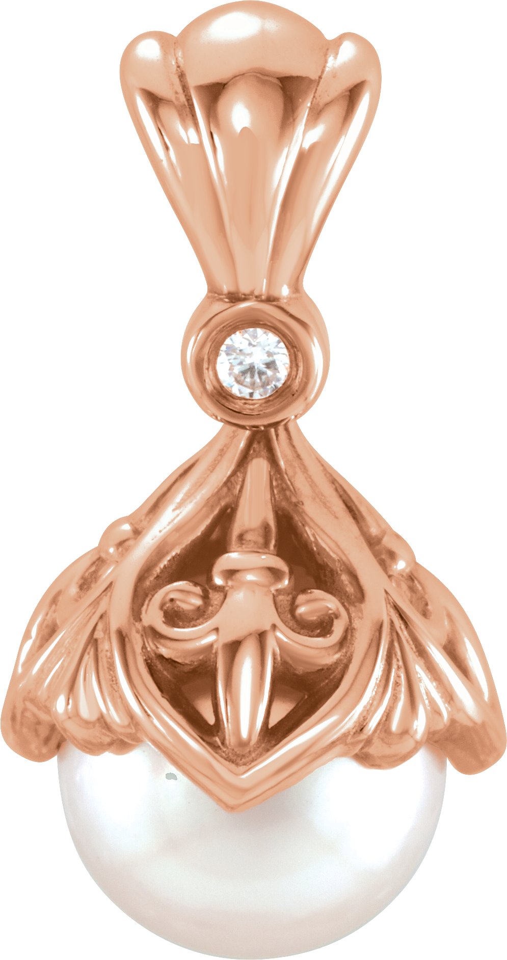 14K Rose 7 7.5 mm Freshwater Cultured Pearl & .02 CTW Diamond Fleur de lis Pendant