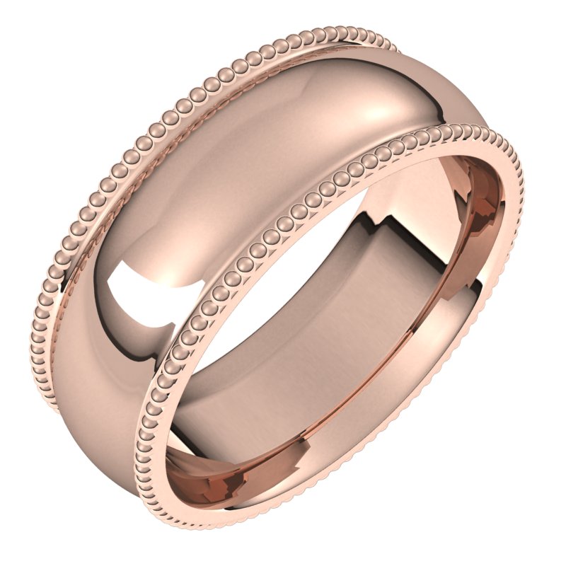 14K Rose 7 mm Beaded Comfort Fit Band Size 15.5