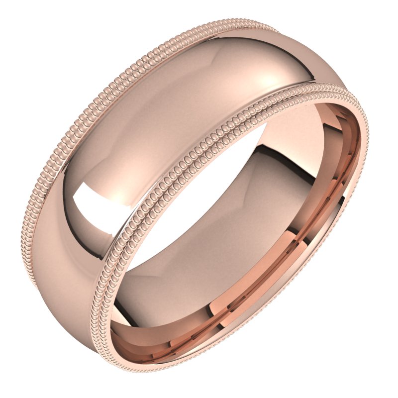 14K Rose 7 mm Double Milgrain Half Round Comfort Fit Band Size 13 Ref 11585112