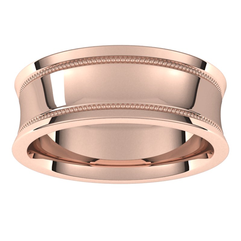 14K Rose 7 mm Milgrain Concave with Edge Band Size 18.5