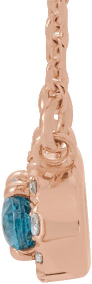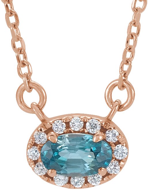 14K Rose 7x5 mm Oval Blue Zircon & 1/6 CTW Diamond 16 inch Necklace