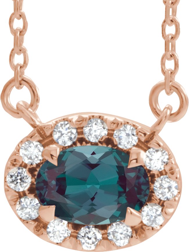 14K Rose 7x5 mm Oval Chatham Lab Created Alexandrite & 1/6 CTW Diamond 18 inch Necklace