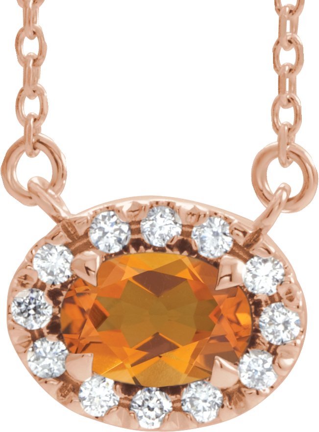 14K Rose 7x5 mm Oval Citrine & 1/6 CTW Diamond 18 inch Necklace