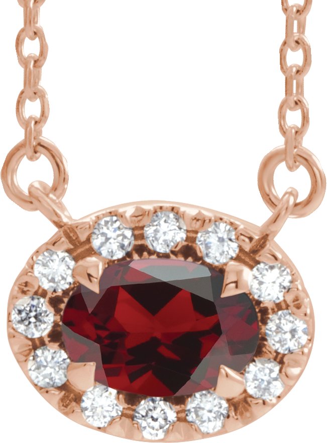 14K Rose 7x5 mm Oval Mozambique Garnet & 1/6 CTW Diamond 16 inch Necklace