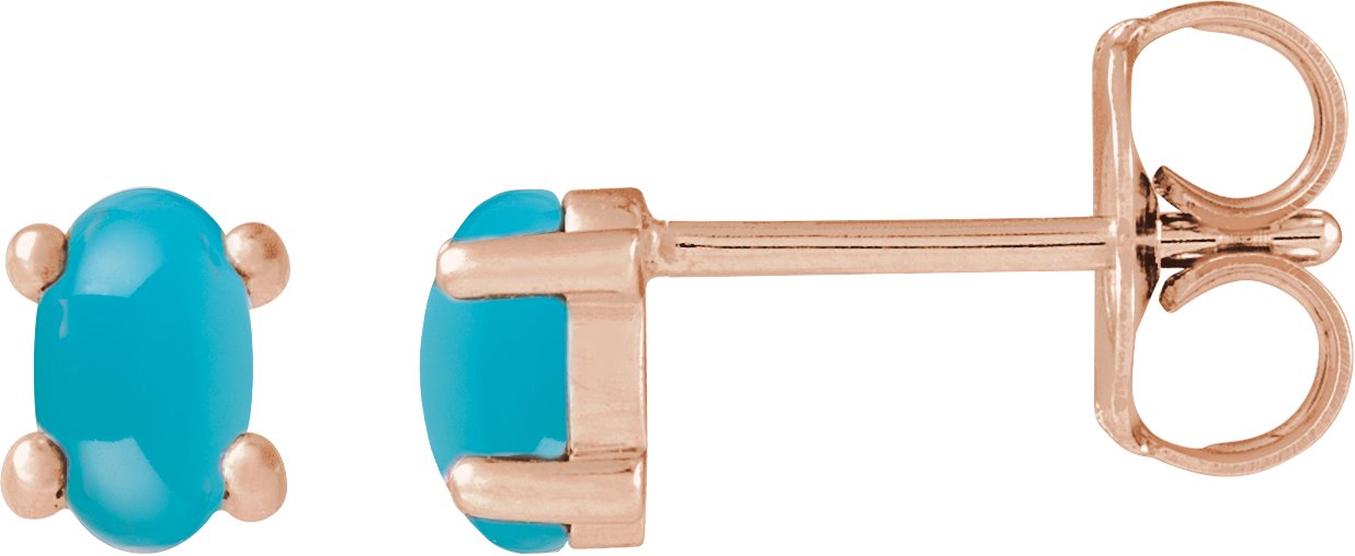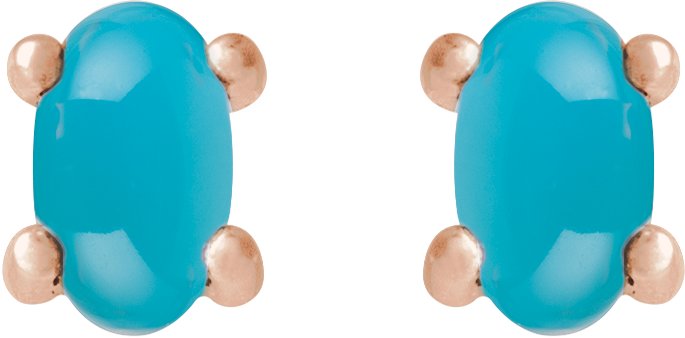 14K Rose 7x5 mm Oval Natural Turquoise Earrings