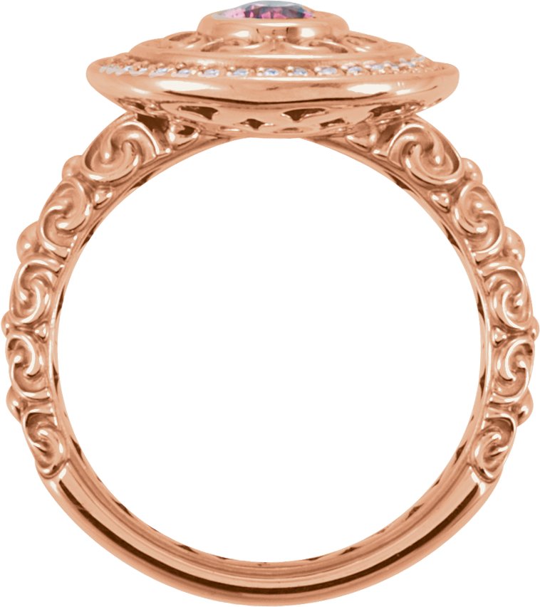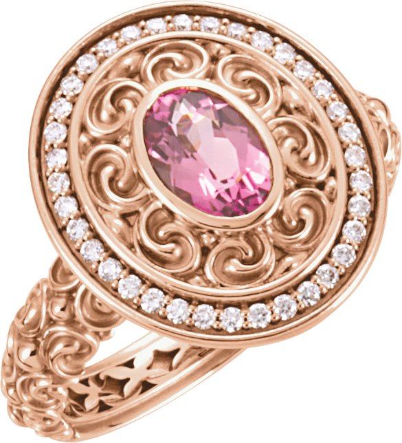 14K Rose 7x5 mm Pink Tourmaline & 1/6 CT Diamond Ring