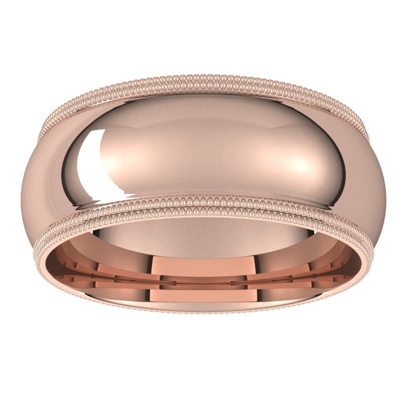 14K Rose 8 mm Double Milgrain Half Round Comfort Fit Band Size 7