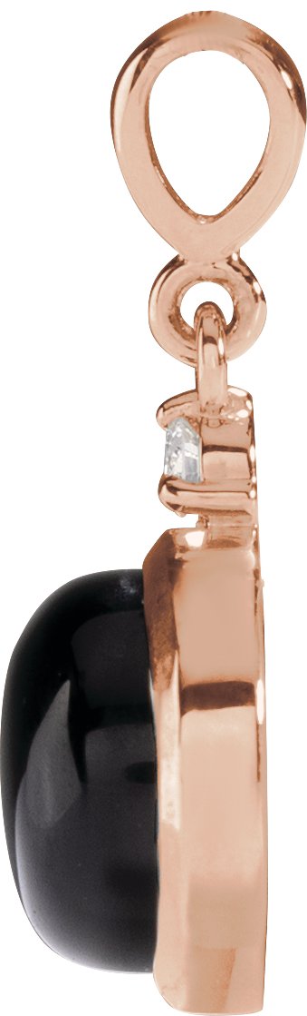 14K Rose 8 mm Natural Black Onyx & .03 CT Natural Diamond Cabochon Pendant
