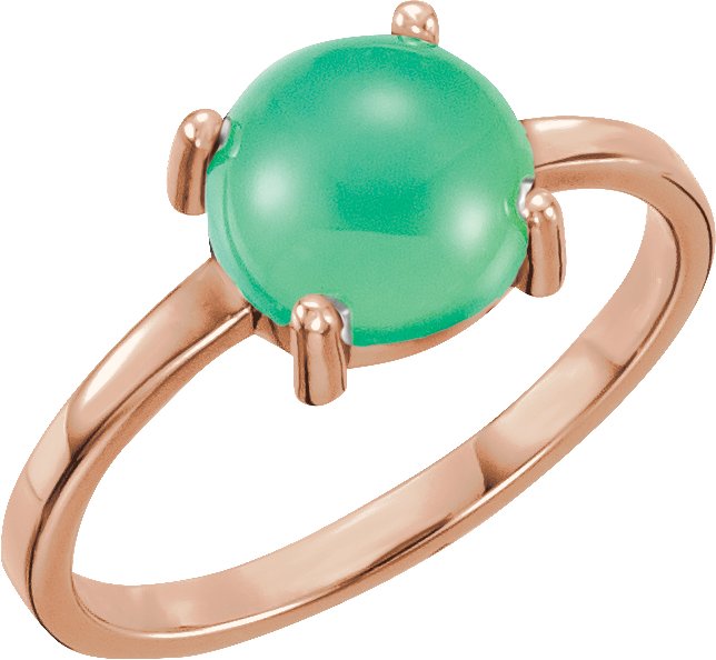 14K Rose 8 mm Round Chrysoprase Cabochon Ring