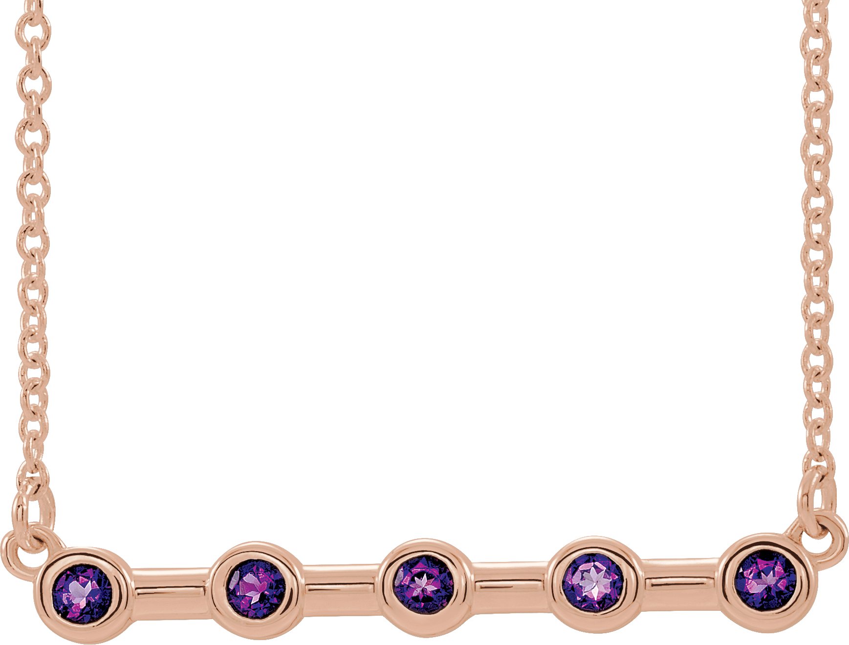 14K Rose Amethyst Bezel Set Bar 18 inch Necklace