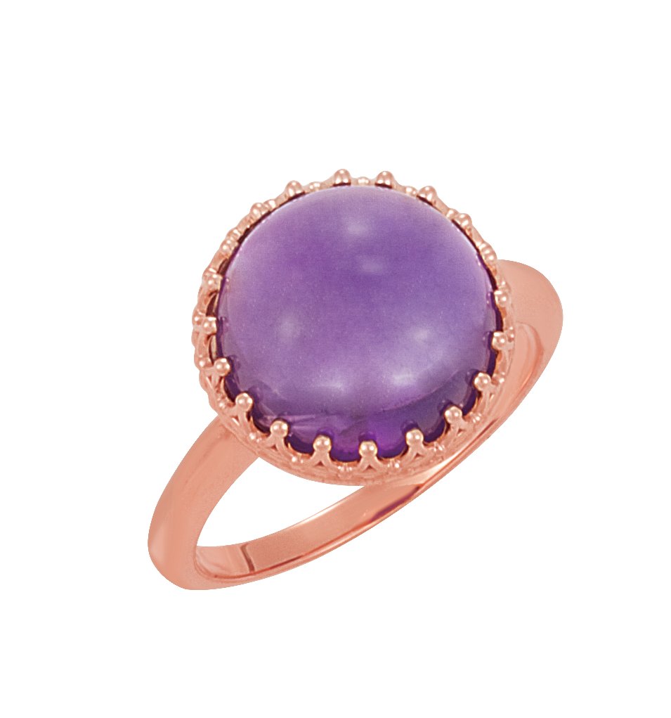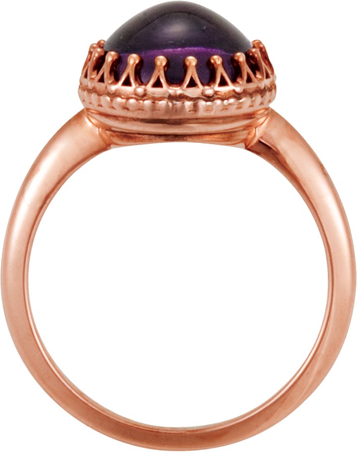 14K Rose Amethyst Crown Design Cabochon Ring