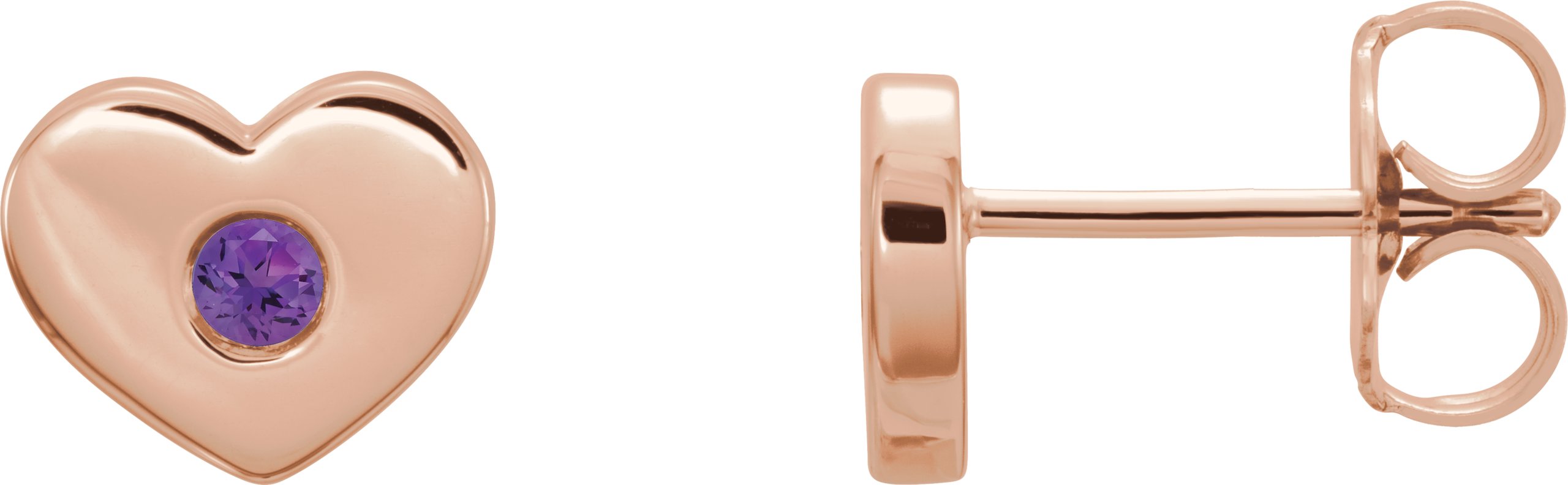 14K Rose Amethyst Heart Earrings