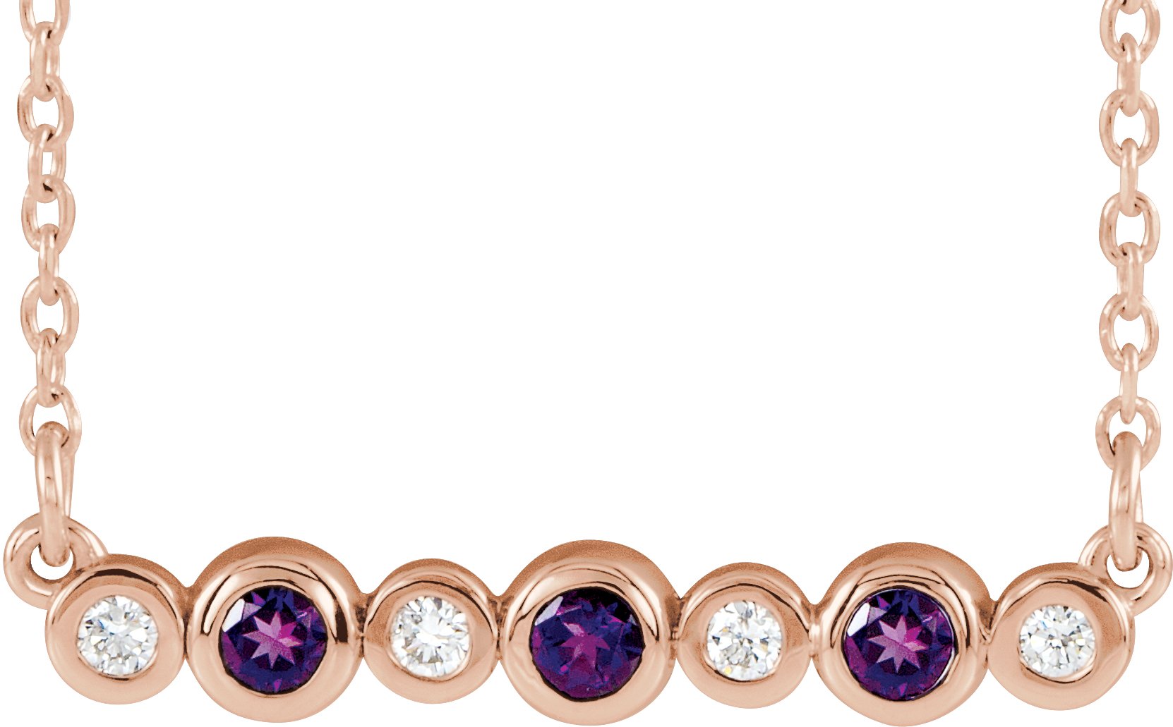 14K Rose Amethyst & .08 CTW Diamond Bezel Set Bar 16 18" Necklace Ref. 14204898