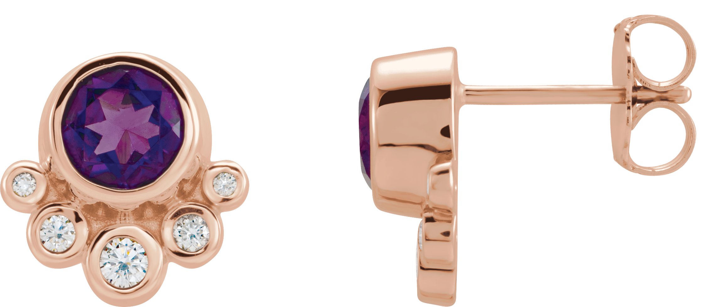 14K Rose Amethyst & 1/8 CTW Diamond Earrings