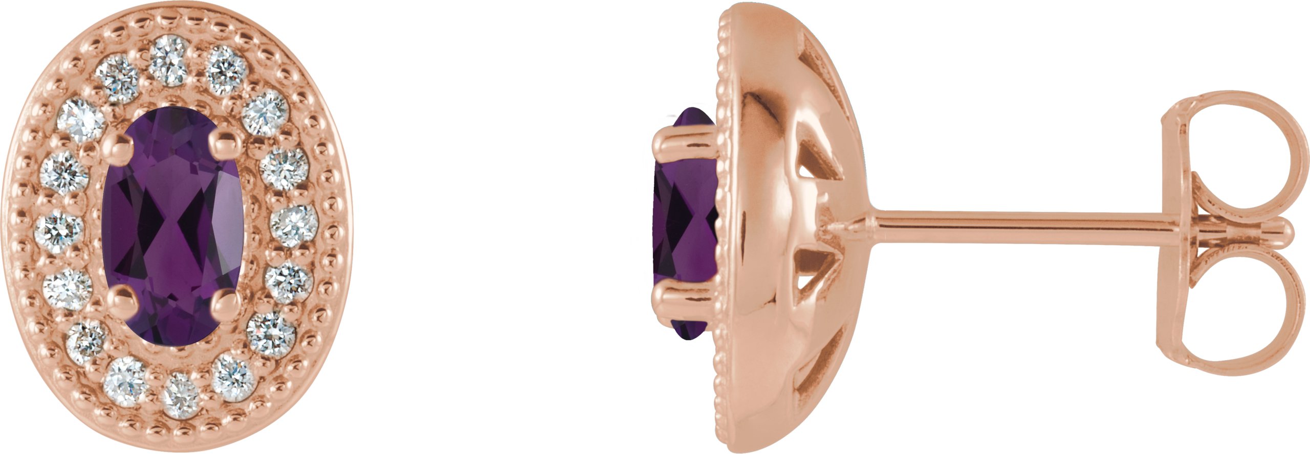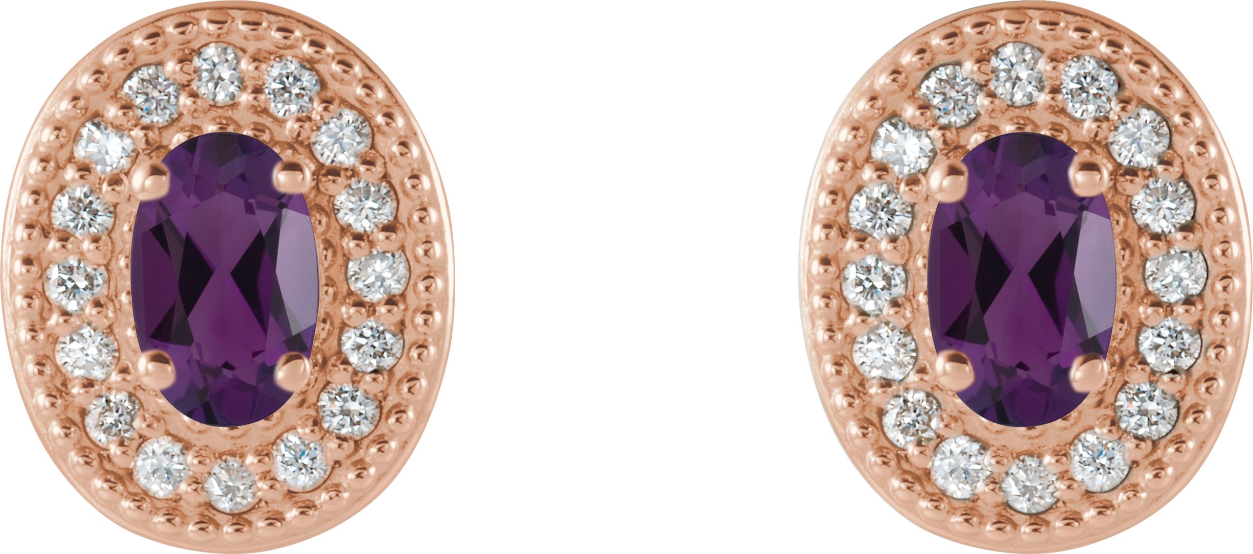 14K Rose Amethyst & 1/8 CTW Diamond Halo Style Earrings
