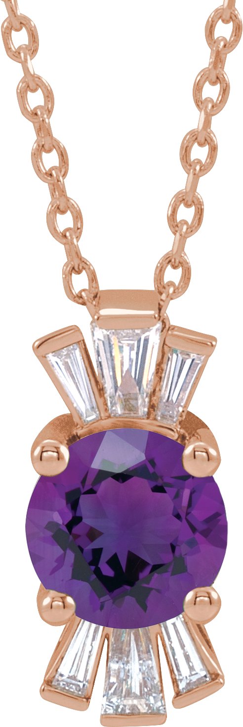 14K Rose Amethyst & 1/6 CTW Diamond 16 18 inch Necklace