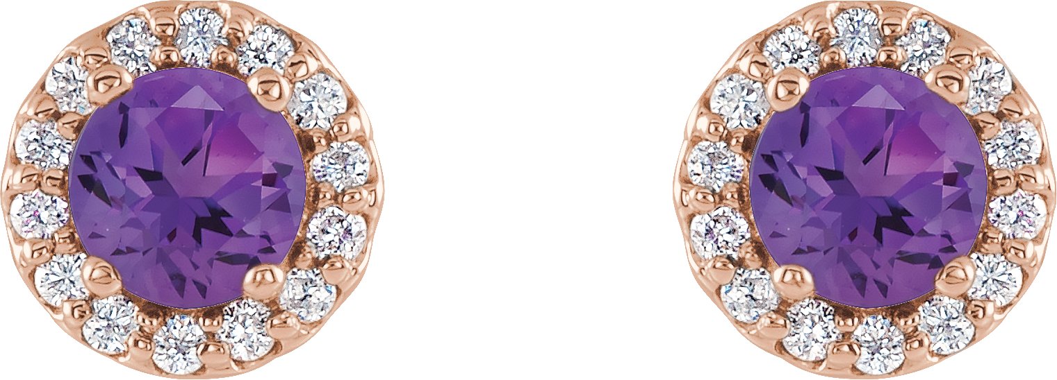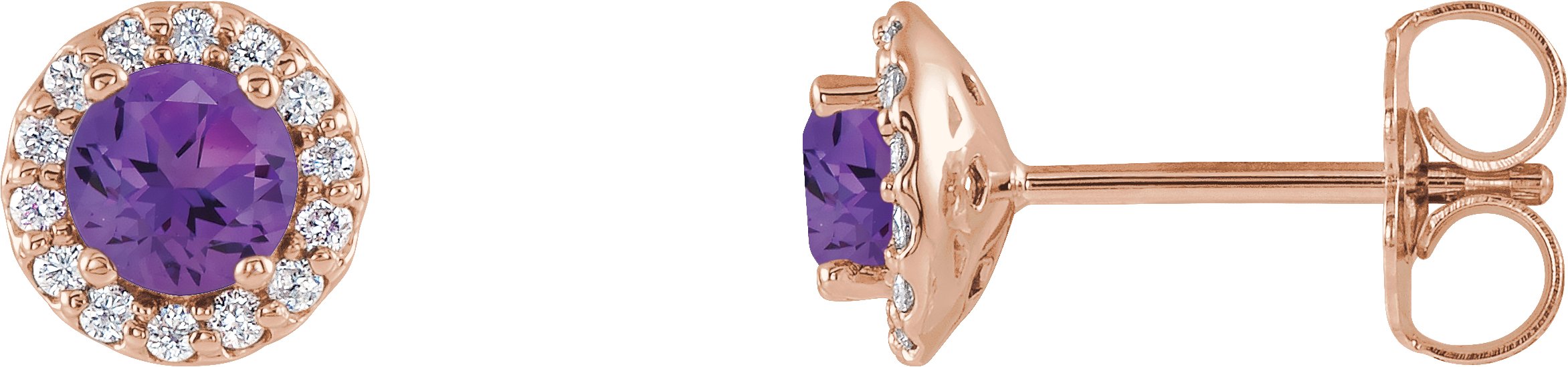 14K Rose Amethyst and .17 CTW Diamond Earrings