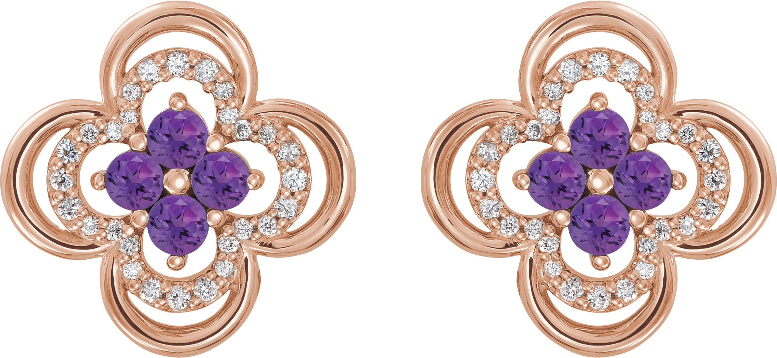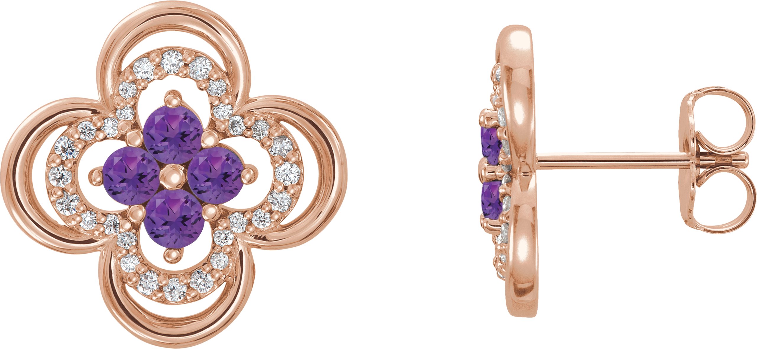 14K Rose Amethyst & 1/5 CTW Diamond Clover Earrings