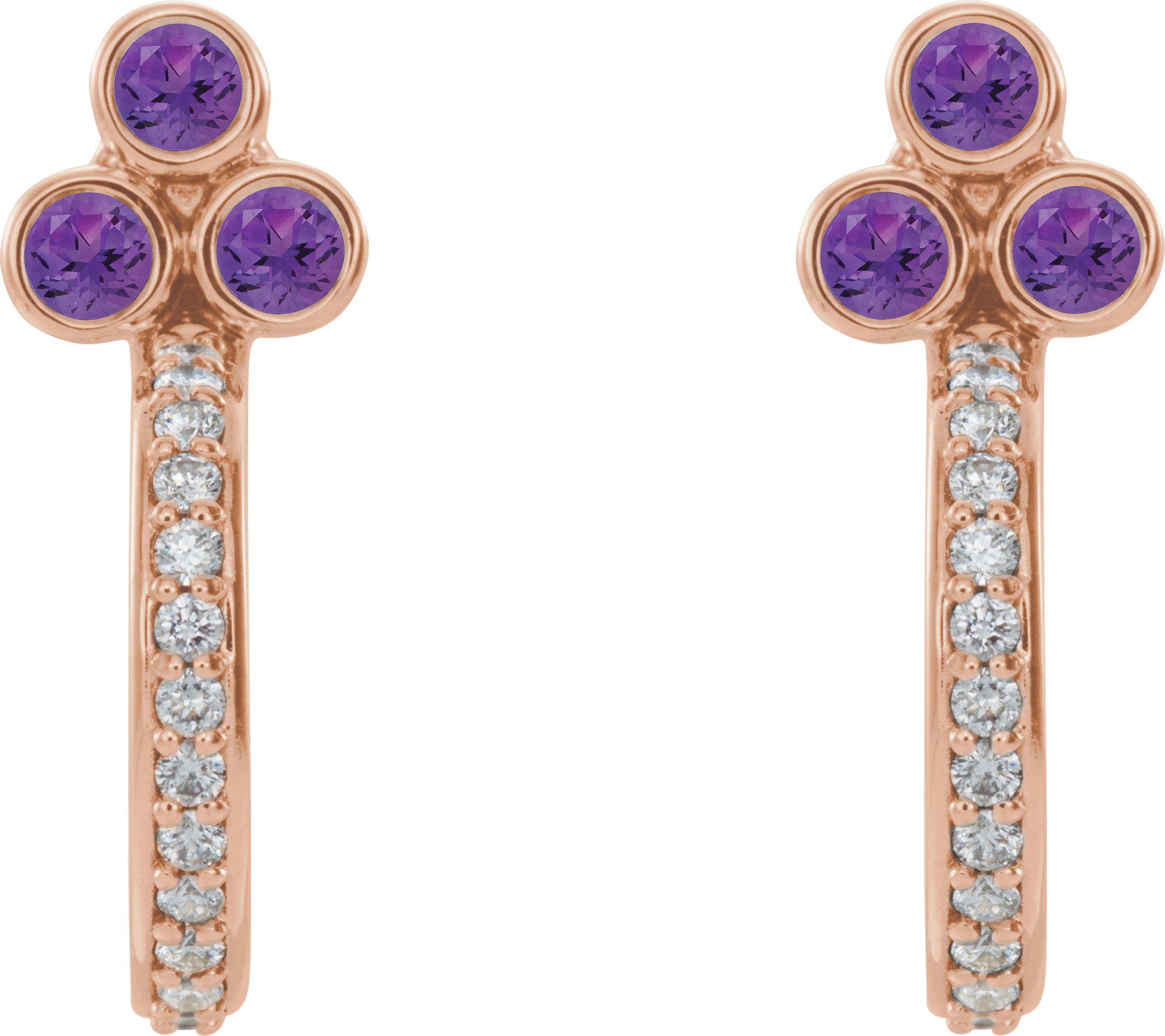 14K Rose Amethyst & 1/4 CTW Diamond J Hoop Earrings