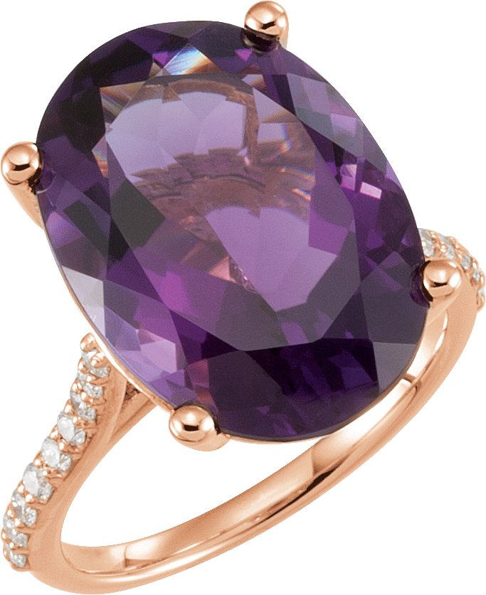 14K Rose Amethyst & 1/4 CTW Diamond Ring
