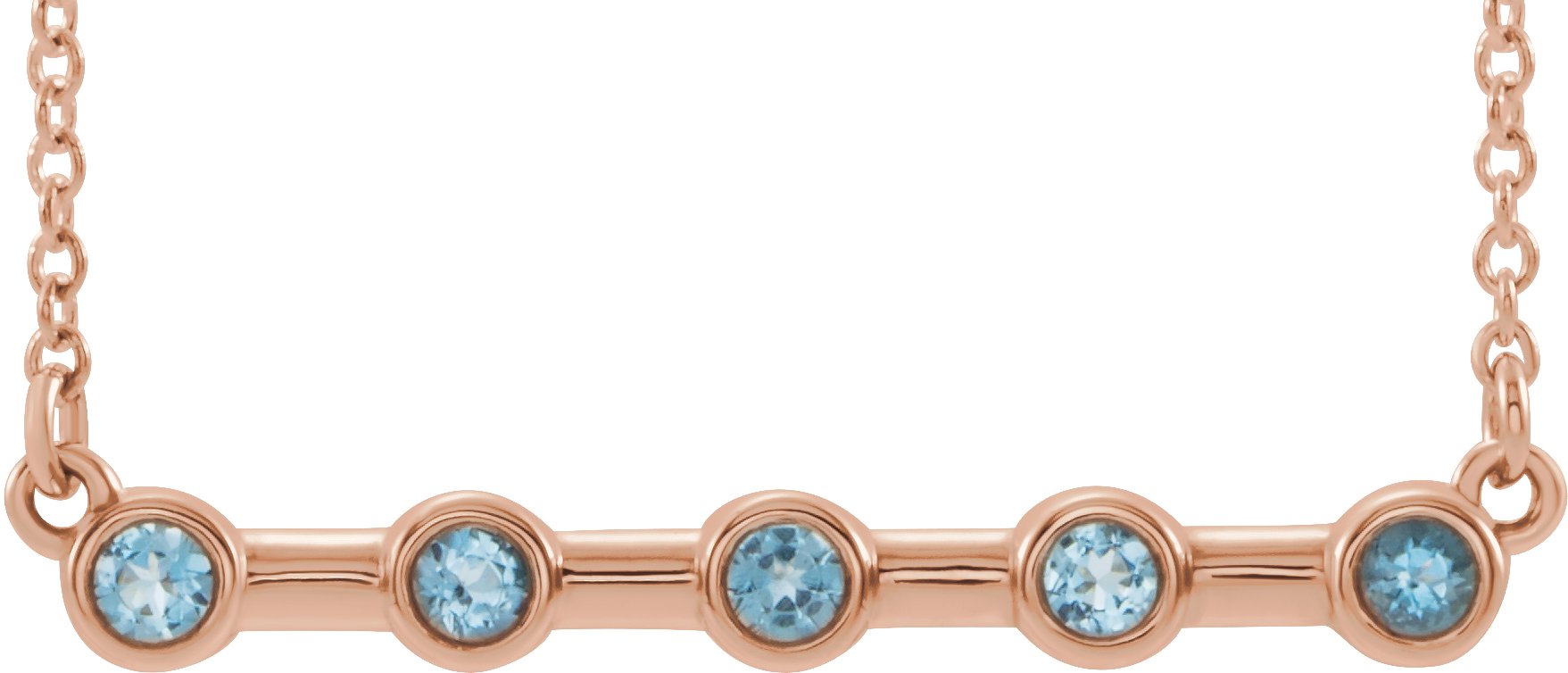 14K Rose Aquamarine Bezel Set Bar 16 inch Necklace