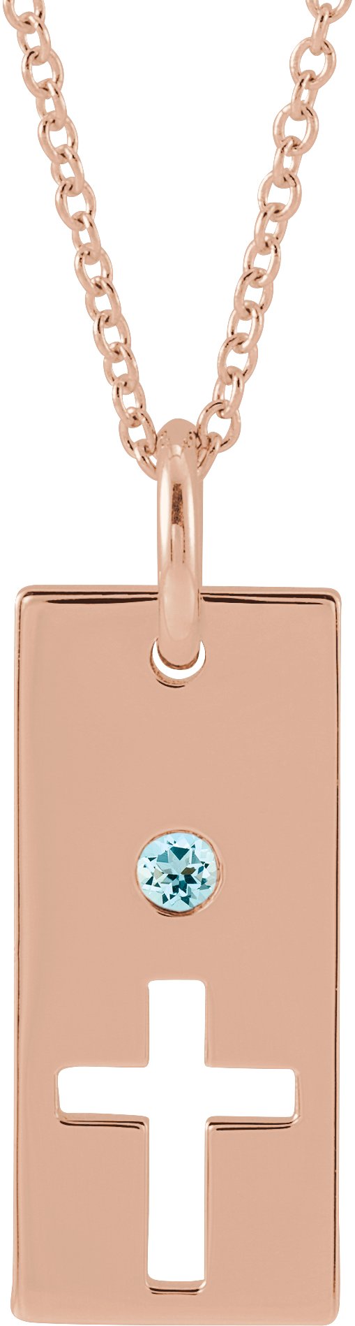 14K Rose Aquamarine Cross Bar 16 18" Necklace Ref. 17077723