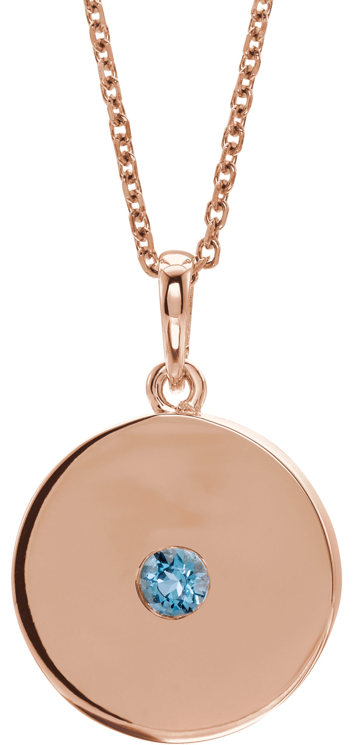 14K Rose Aquamarine Disc 16 18 inch Necklace