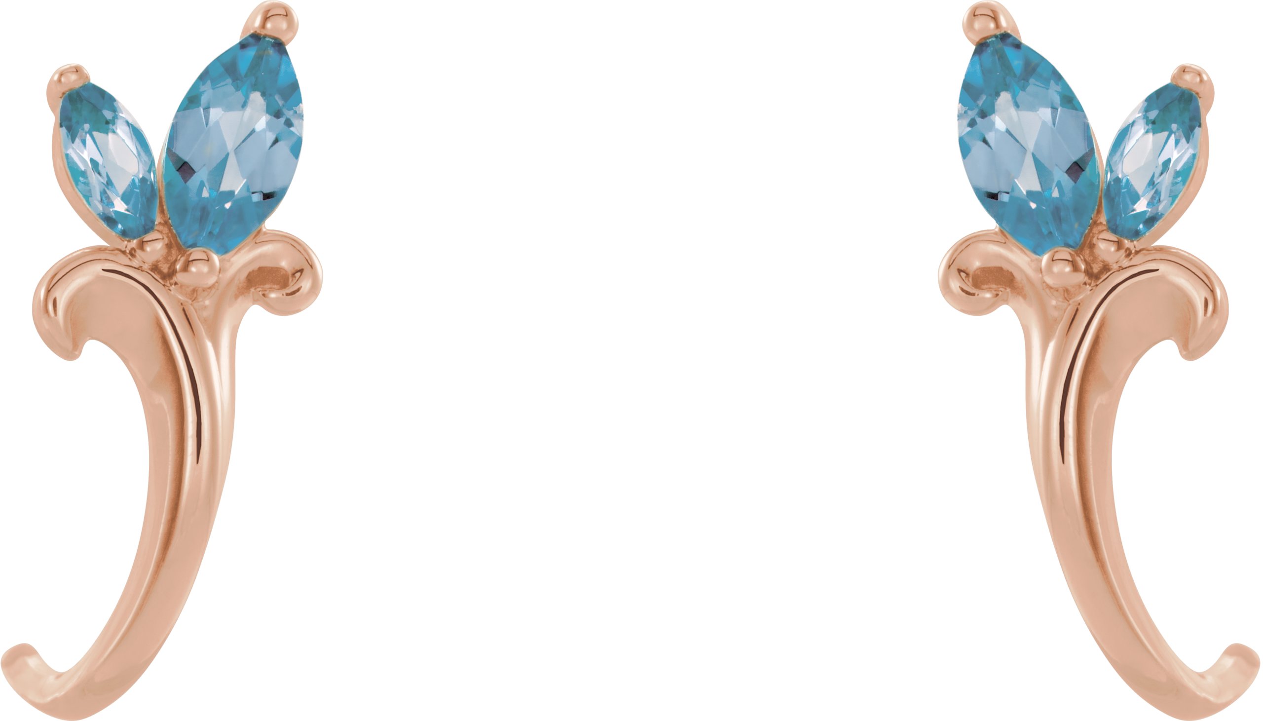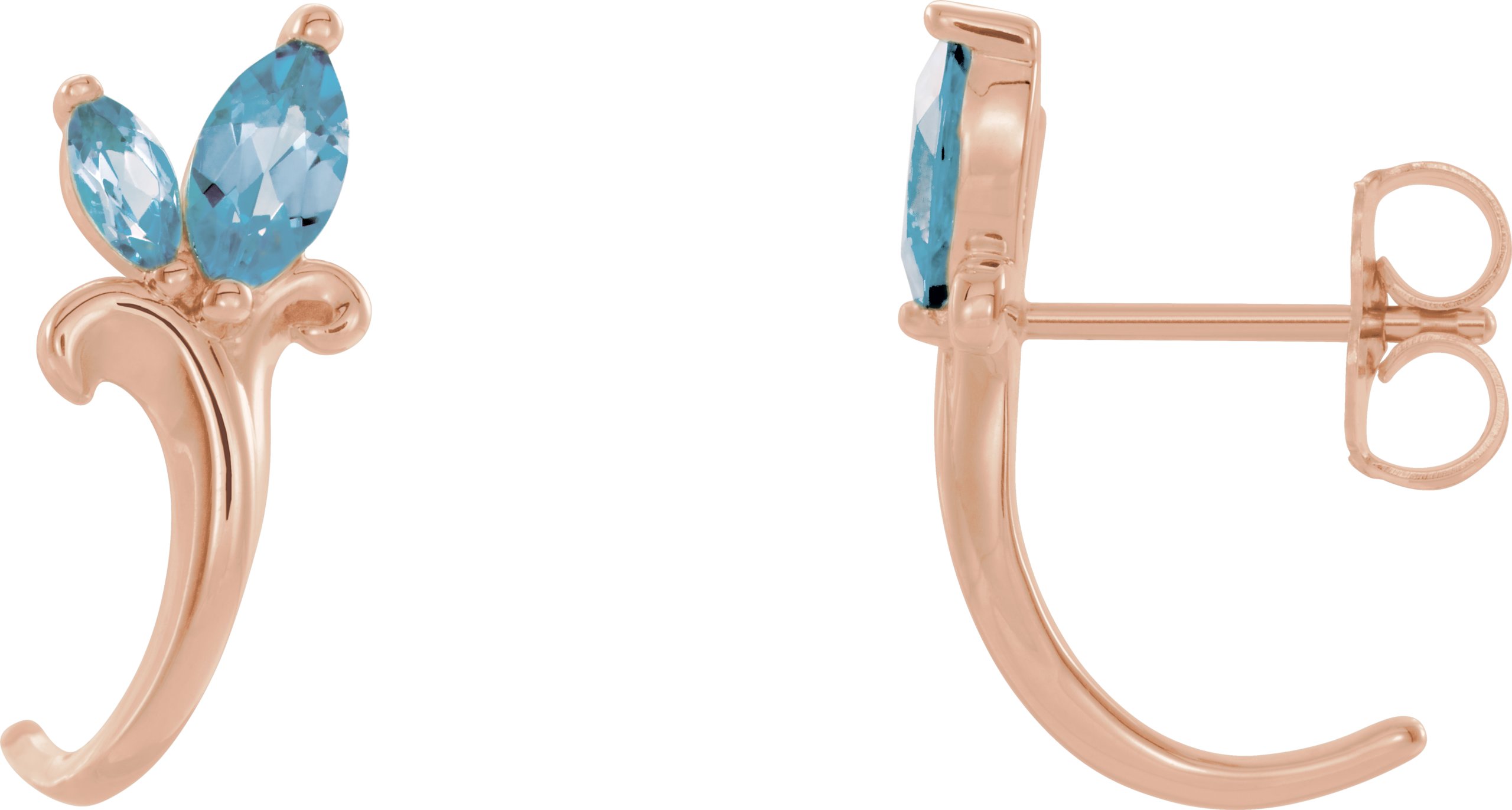 14K Rose Aquamarine Floral Inspired J Hoop Earrings
