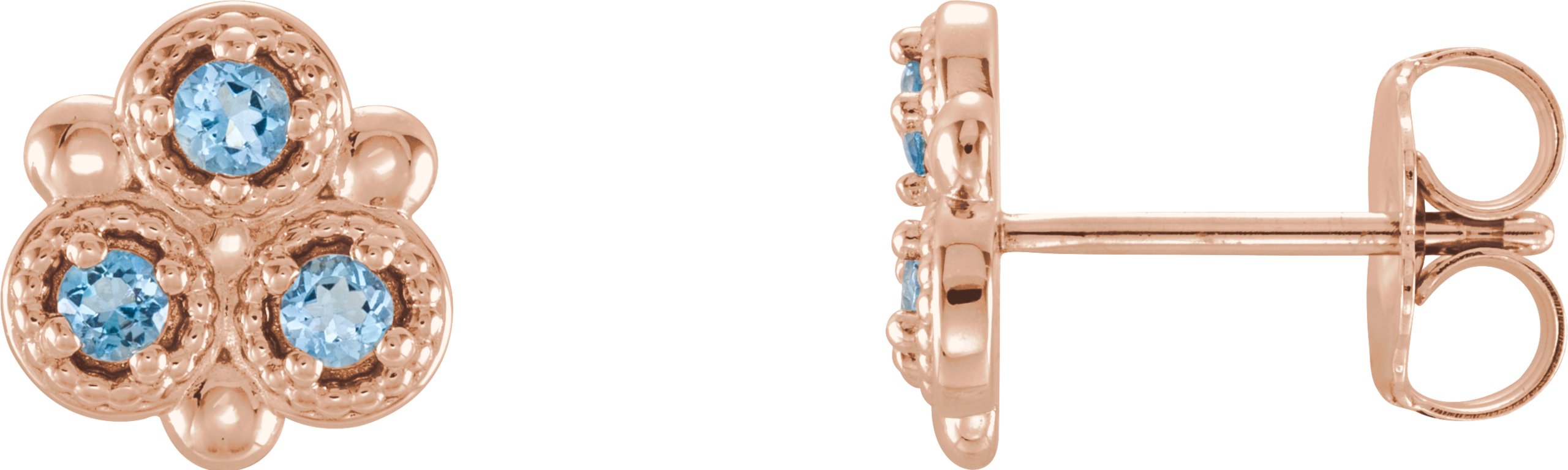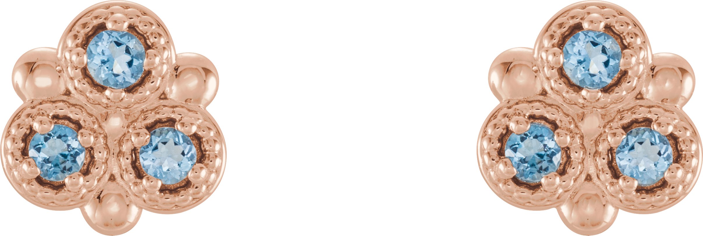 14K Rose Aquamarine Three Stone Earrings