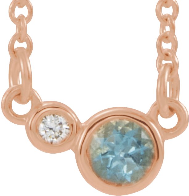 14K Rose Aquamarine & .02 CTW Diamond 16 inch Necklace