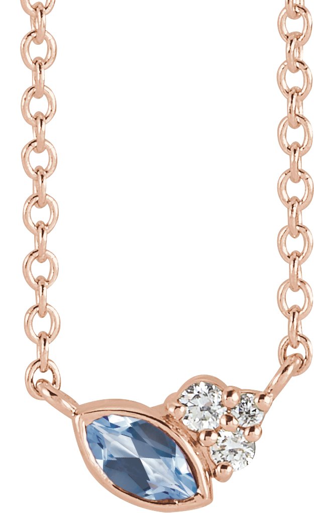 14K Rose Aquamarine & .03 CTW Diamond 16 inch Necklace