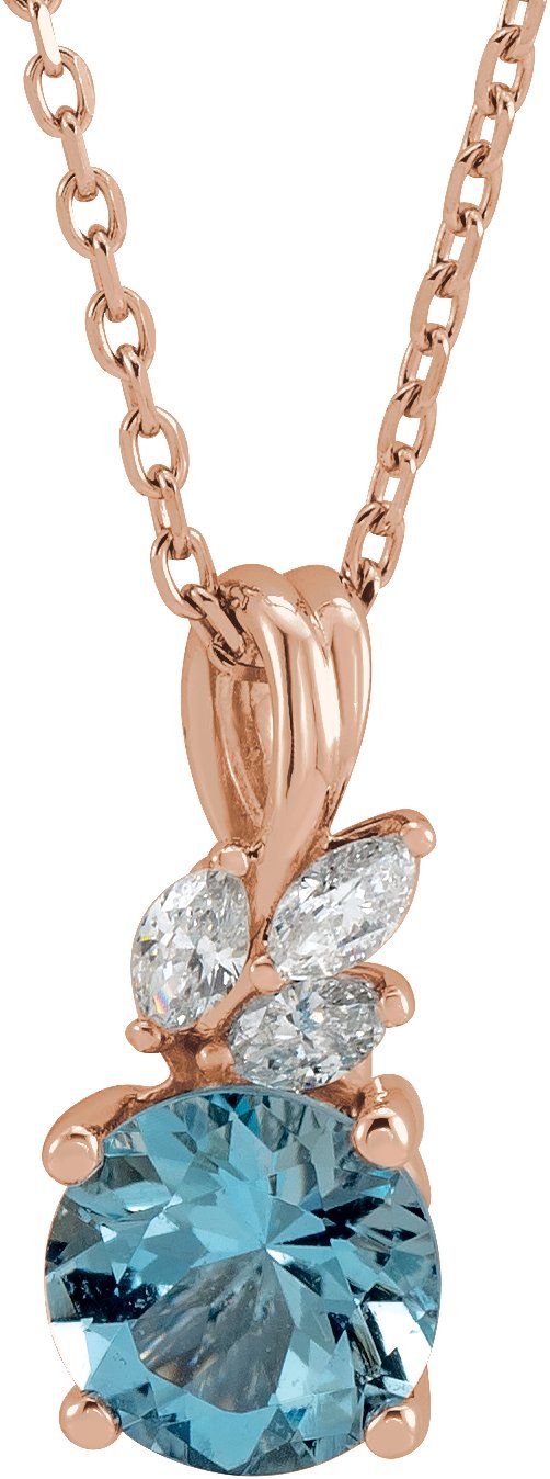 14K Rose Aquamarine & 1/10 CTW Diamond 16 18" Necklace Ref. 14195072